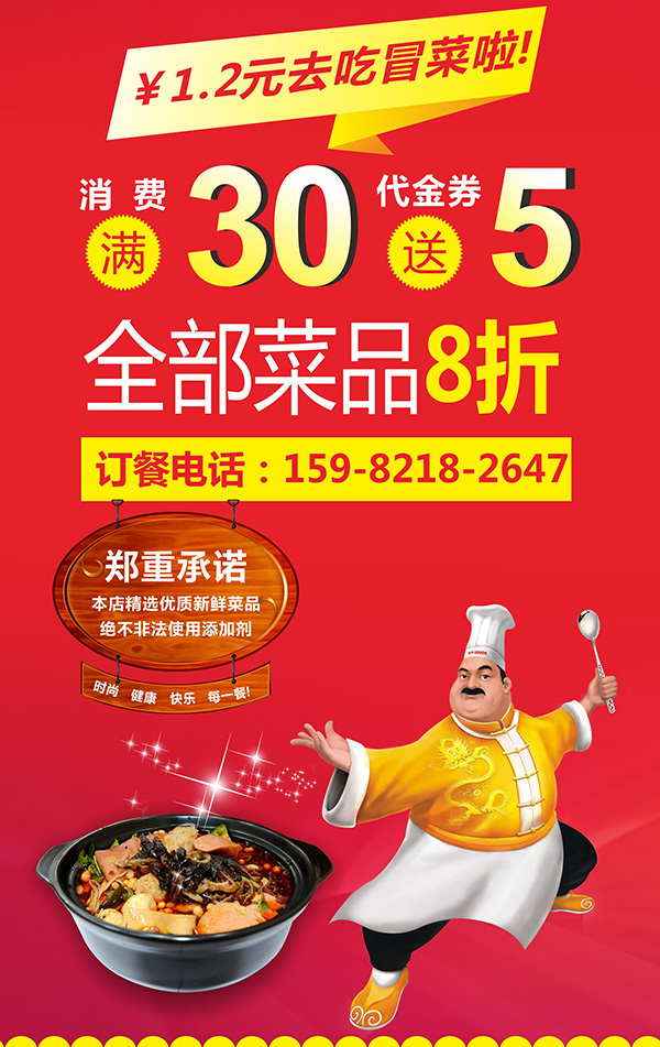 開業(yè)期間菜品全部8折優(yōu)惠,還有吃滿30送5元代金券
