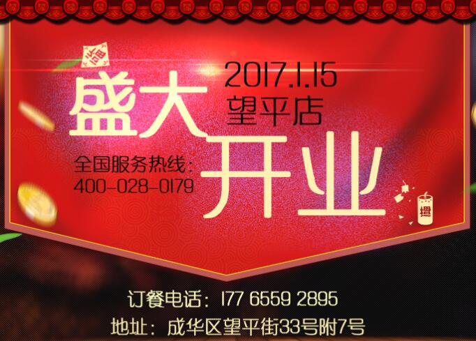 ( 全國加盟 ) 028-83337465 祝賀蓉城傳奇新派冒菜【望平店】于1月15日盛大開業