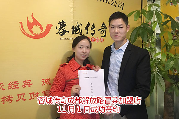 ( 全國加盟 ) 028-83337465 人生處處都是選擇題,選擇對了就可平步青云,選擇錯了則會損失慘重,餐飲行業創業也是如此;成都冒菜加盟市場紛繁復雜,什么樣的品牌才能吸引更多的創業者呢?蓉城傳奇新派冒菜可謂是當仁不讓,以獨特的市場優勢,吸引著全國各地投資者的考察,在今天(11月1日),來自成都的兩位投資創業者均選擇蓉城傳奇加盟,也只有擁有過硬的市場優勢,才能贏得消費者與創業者的青睞。