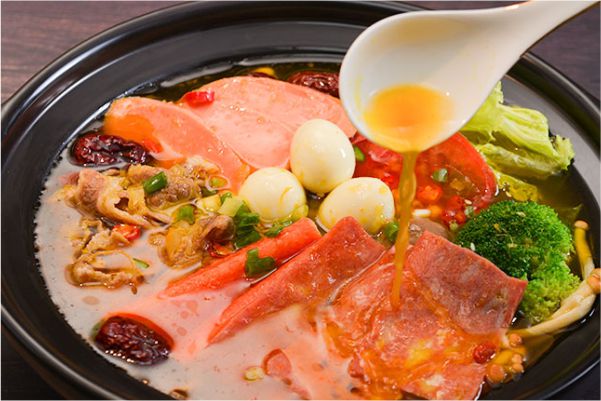 傳統冒菜產品單一,一般只有紅湯與清湯冒菜,市場前景有局限性;蓉城傳奇針對這樣的市場現狀,靠著專業的技術研發能力,打破了市場的局限,以麻辣冒菜、金湯冒菜、干拌冒菜、青花椒冒菜、火鍋冒菜、青椒冒菜等等,豐富了冒菜市場的產品,給消費者帶去了更多的可能性。